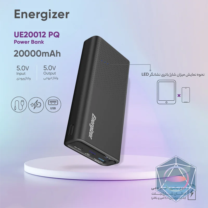 معرفی پاوربانک 20000mAh انرجایزر (Energizer) مدل UE20012PQ