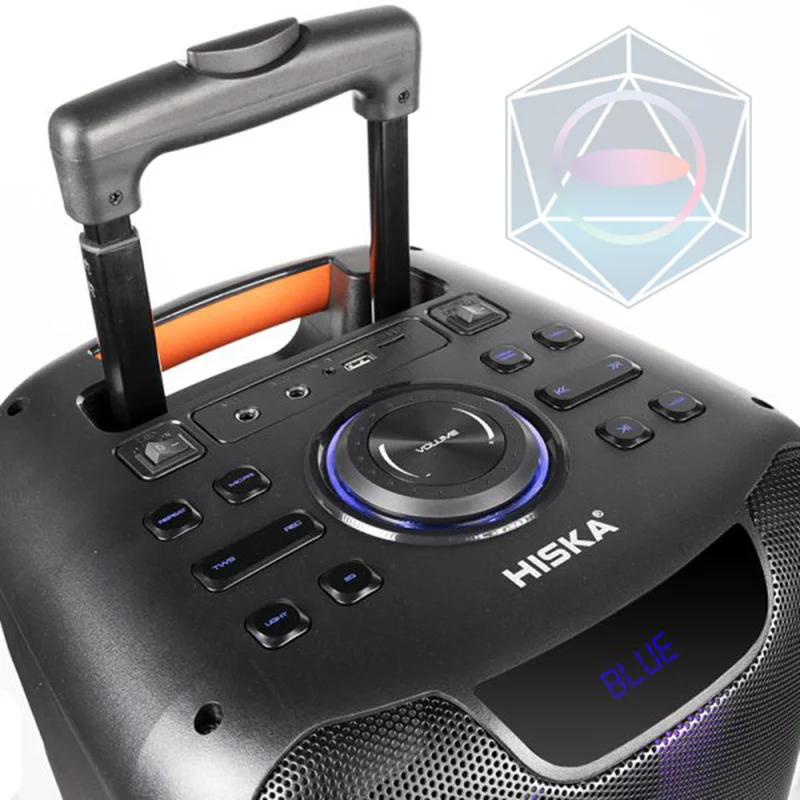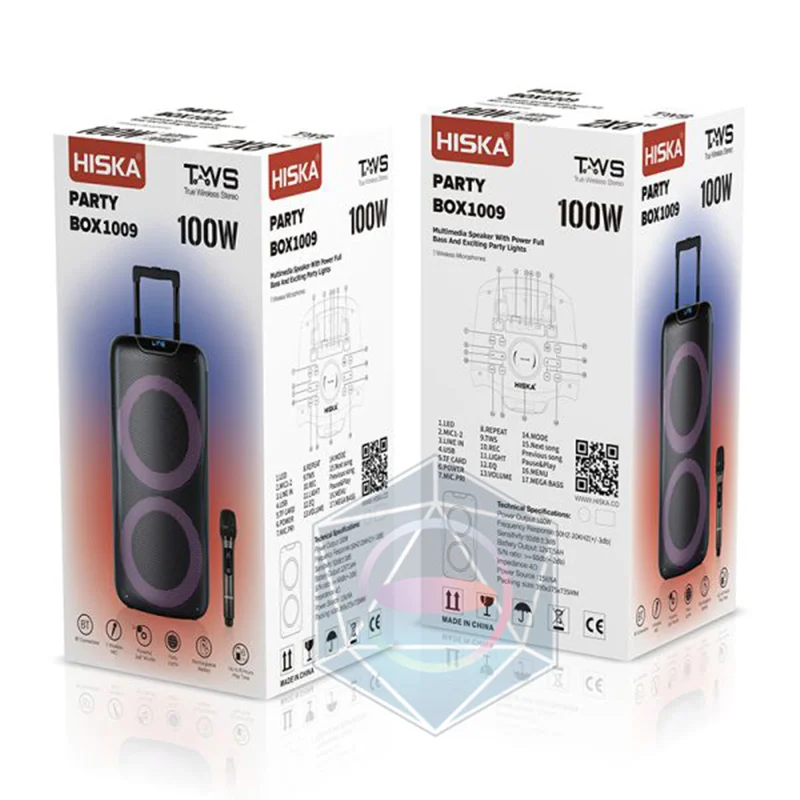 اسپیکر حرفه ایی خانگی یا پارتی باکس PARTY BOX هیسکا |HISKA جزو محصولاتی است که چند سال اخیر طرفداران بسیاری را به خود جذب کرده است. قدرت بالای پخش، تفکیک صدای مناسب، امکان حمل و نقل سریع و امکان استفاده از باطری و پخش بدون نیاز به باطری غیر مستقیم از قابلیت های جذابی است که سرعت مورد توجه مصرف کنندگان این دسته از اسپیکر ها قرار گرفت. قابلیت های نیمه حرفه ایی این دسته از پخش کننده ها استفاده آن را را بسیار فراگیر کرده است.پارتی باکس PARTY BOX مدل 1009 هیسکا یکی از قدرتمند ترین پارتی باکس های برند هیسکا است که با بهره مندی از دو اسپیکر 8 اینچی یک تفکیک صدای عالی را در اختیار شما قرار خواهد داد.
